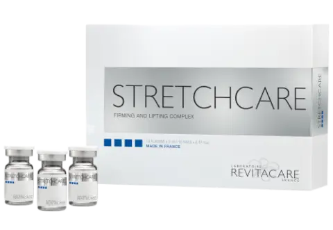 Stretchcare® to produkt o wyjątkowo skutecznej formule zawierający kwas hialuronowy, DMAE (dimetyloaminoetanol), pierwiastki Cu-Zn oraz witaminę B5, by uzyskać maksymalny efekt napięcia i wzmocnienia skóry. Dzięki unikatowej kompozycji jest jednym z najskuteczniejszych koktajli do mezoterapii igłowej w walce z wiotką skórą.